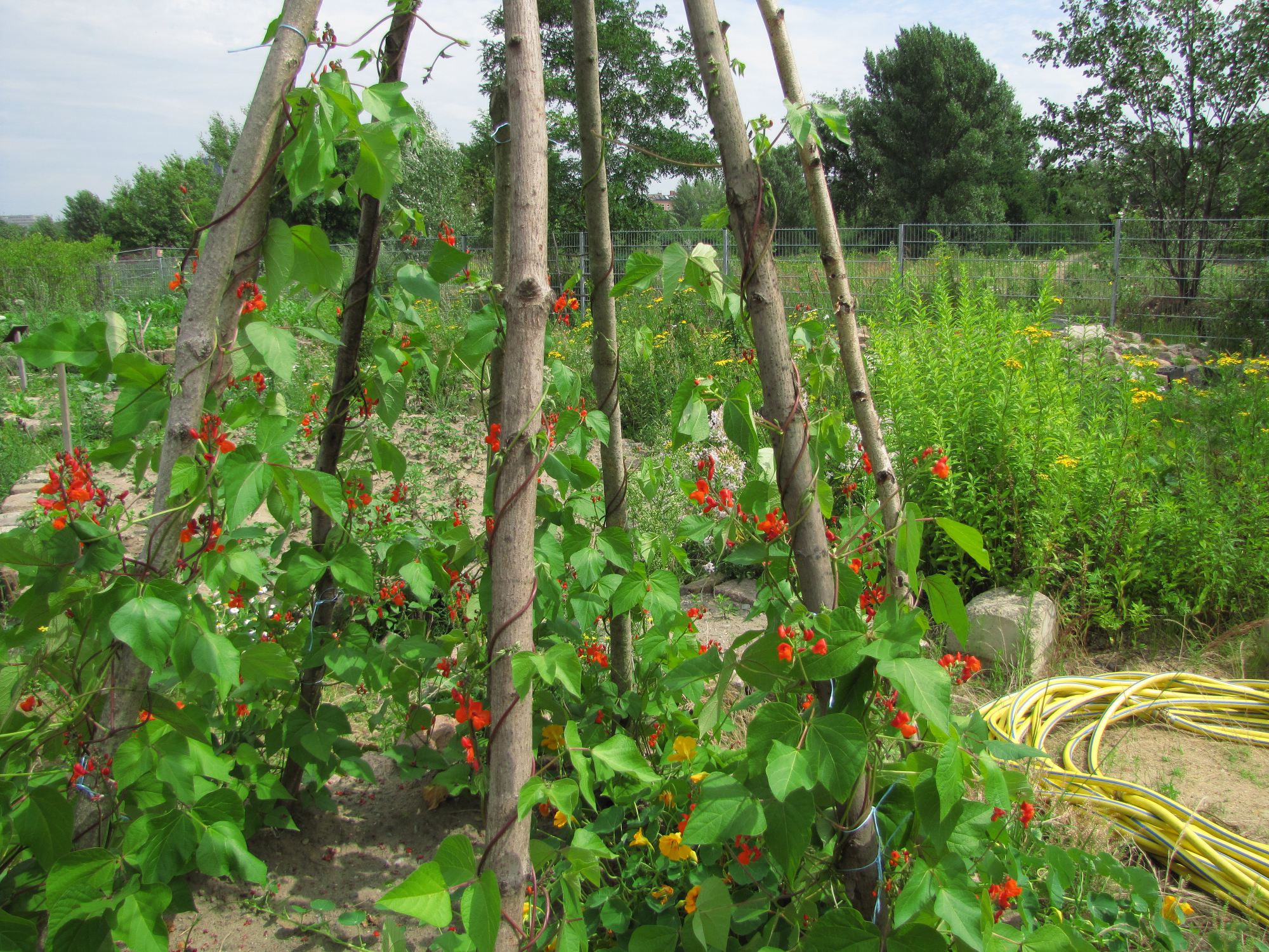 Im Rosenduftgarten am Gleisdreieck in Berlin treffen sich Bosnierinnen zur Gartenarbeit. Hier ist seit 2008 ein Interkultureller Garten, der den Flüchtlingsfrauen hilft, die traumatischen Ereignisse aus dem Bosnienkrieg zu verarbeiten. Von „Südost Europa Kultur e.V.“ wird das Projekt gefördert. Begzada Alatovic ist die Projektleiterin und macht die Gartentherapie mit den Frauen, die heute in ganz Berlin wohnen. Insgesamt gibt es 35 Einzelbeete und noch einige Gemeinschaftsbeete, die den Frauen die Möglichkeit geben, mitgebrachte Pflanzen, vor allem viele verschiedene alte Bohnensorten anzubauen.